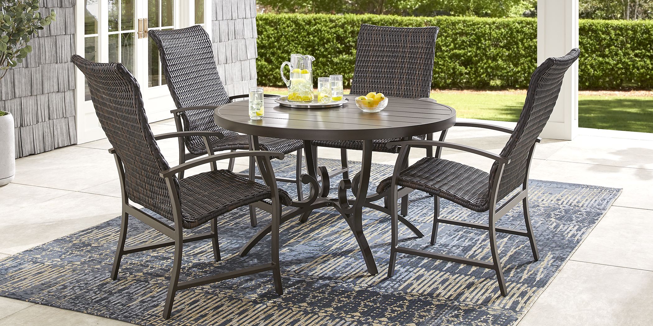 At the end of the year, be sure to protect your new outdoor dining chairs with weatherproof outdoor furniture covers. When making a selection below to narrow your results down, each selection made will reload the page to display the desired results. You can spend your day entertaining guests in the sun with umbrella for sun shade with family and friends, table includes umbrella hole. The chairs are made from durable pe rattan, and the table is made of solid hardwood. Ships free orders over $39. Explore everything you need to make your patio the spot to be this spring and summer. Chic teak orleans rectangular teak bar height extension 9 piece patio dining set. With a traditional rectangular table, this set allows. Bistro sets ( 16 ) patio bar height dining sets ( 8 ) patio dining sets ( 27 ) patio fire pit sets ( 7 ) patio seating sets ( 39 ) patio sectionals ( 11 ) seating capacity. This set includes 2 captain chairs, 2 armless dining chairs, a bench and table that are perfect for entertaining. Ships free orders over $39. Patio coffee tables (24) patio dining tables (40) patio end tables (15) patio folding tables (2) patio table bases (4) patio table tops (3) picnic tables (5) frame material. Mix and match lattice white square metal outdoor patio dining table with slat top create a complete outdoor living scene with create a complete outdoor living scene with this 42 in.