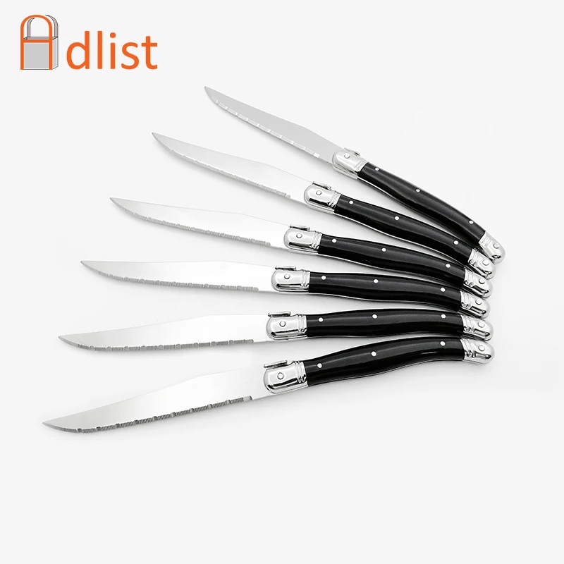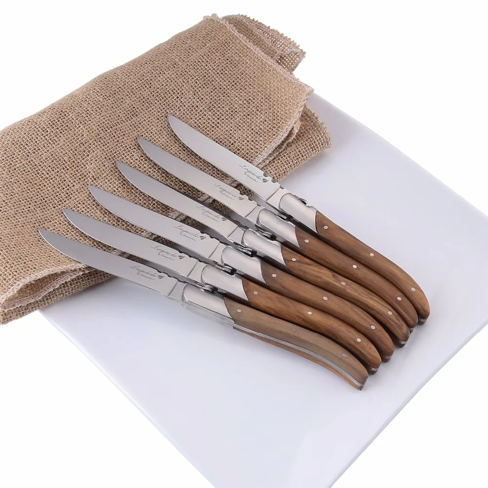 Set of Six Laguiole de table Steak Knives : EBTH from ebth-com-production.imgix.net Housed in a wood box, this set makes a perfect gift for those on your list who love to entertain. Top the napkin with a dinner fork and place a dinner knife to the ride of the plate. Arrange the flatware around the plate. The 5 best steak knives of 2020 waspknife. The best steak knives bring some luxury to the dinner table; Each serrated knife is carefully crafted for precise heft and balance. After 40 hours of research, interviews, and testing, we're convinced the messermeister avanta. Like all other pieces of cutlery, a steak knife has a specific place in a table setting.
